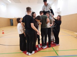 Schülerprojekt mit sozialen Kompetenzspielen in der Turnhalle